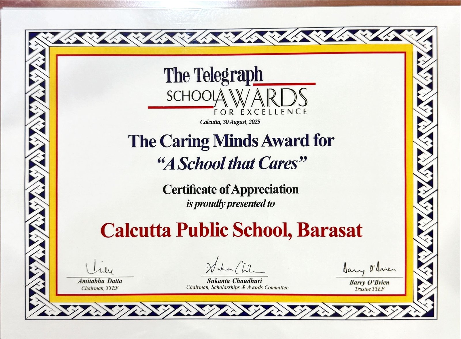 Telegraph School Awards 2025 Certificate of Appreciation for A School That Cares