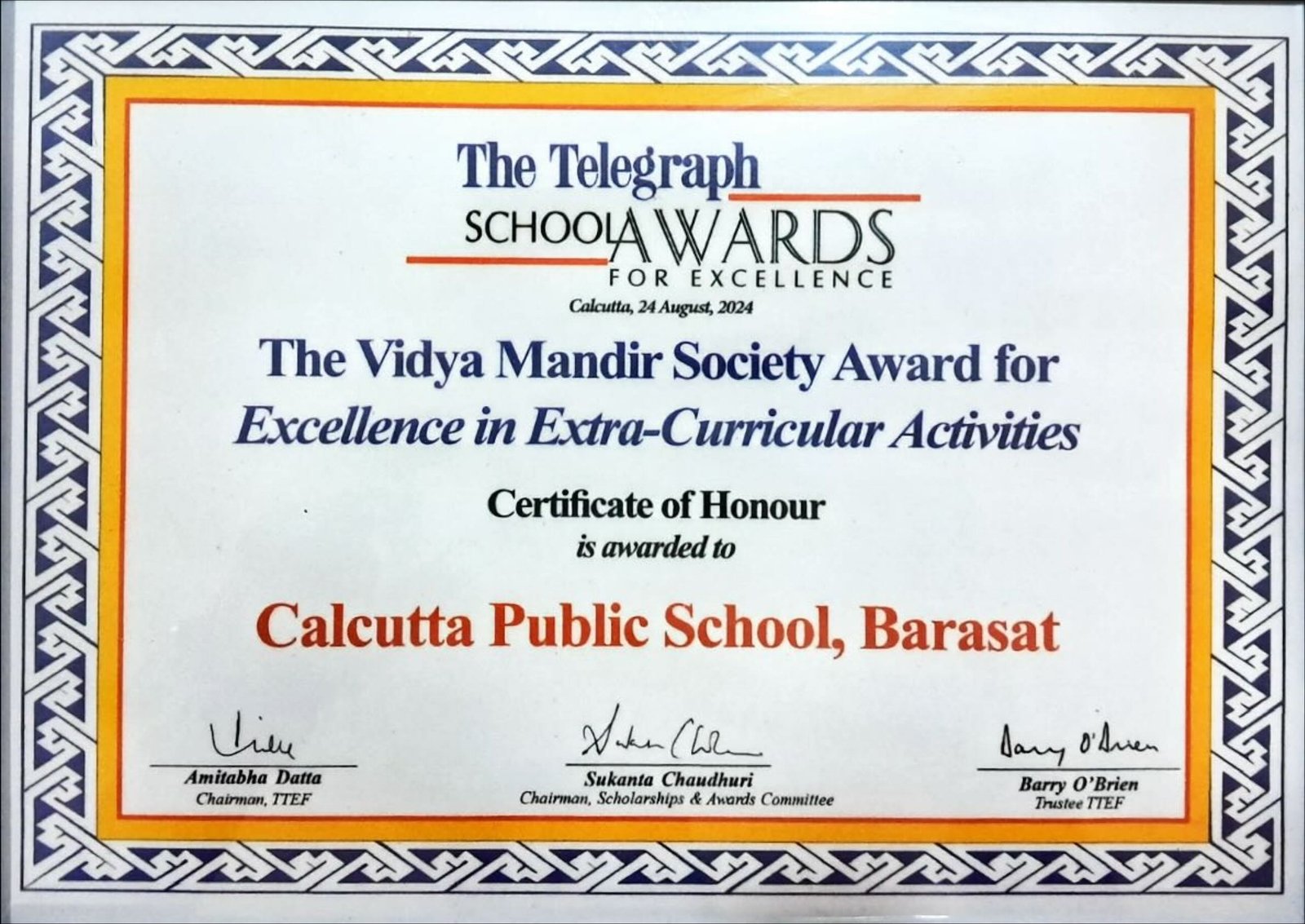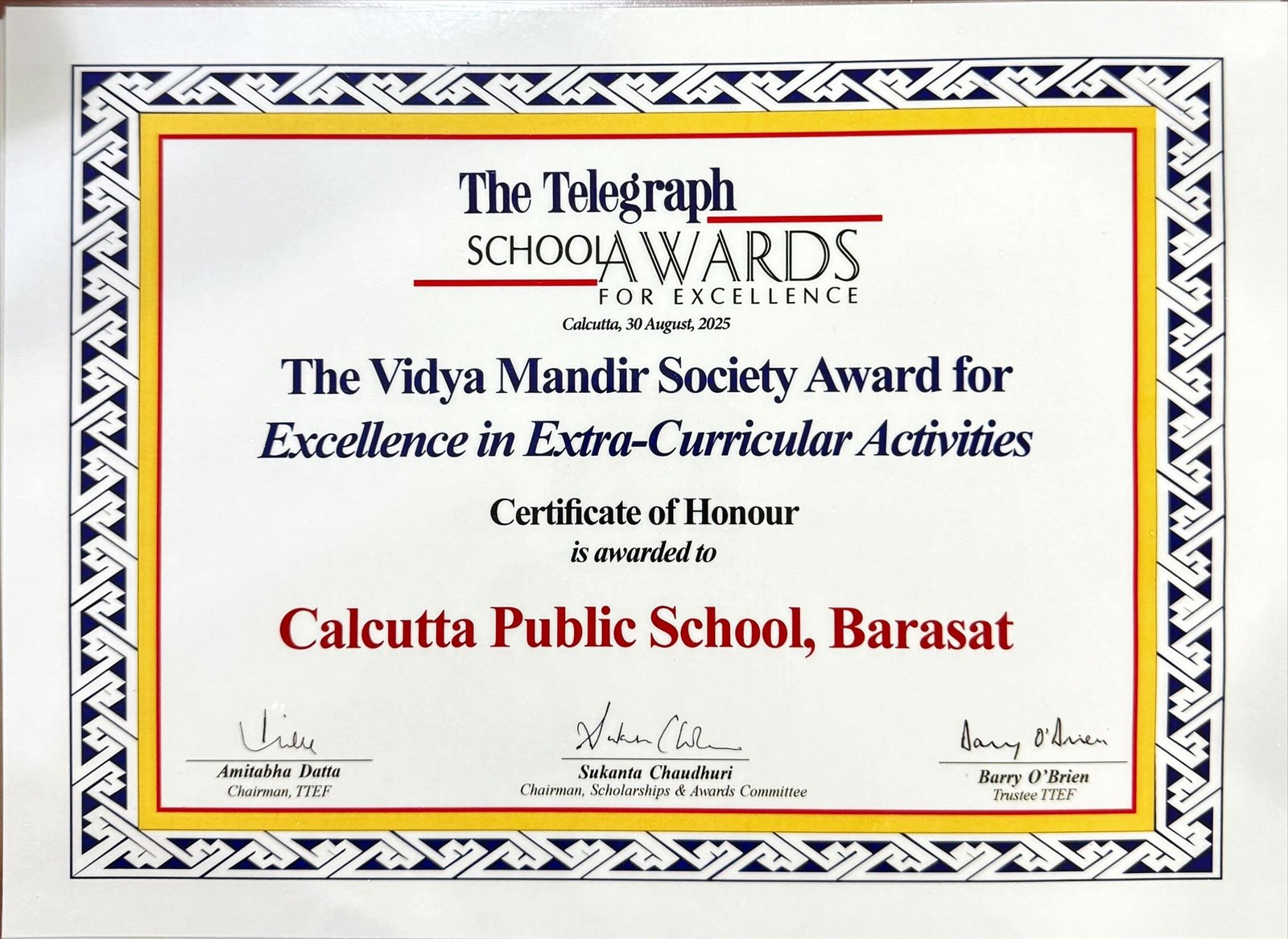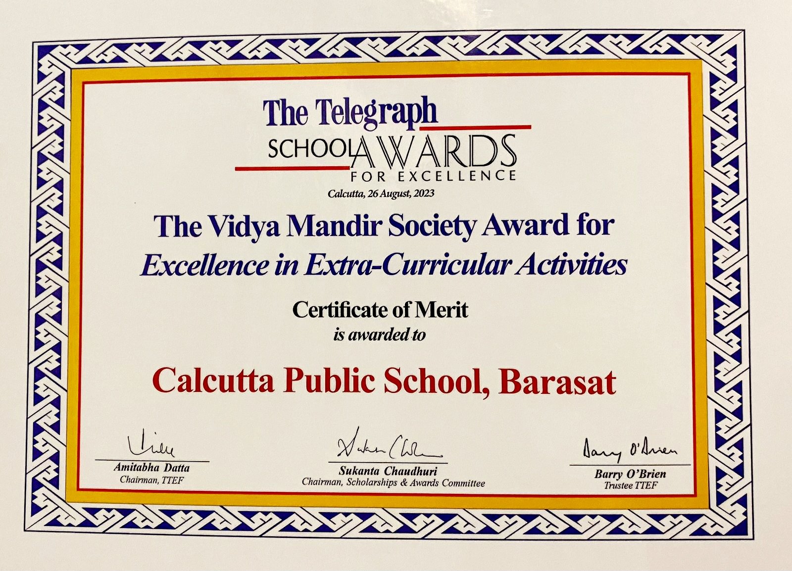 The Telegraph School Awards 2023 Certificate of Merit For Excellence in Extra-Curricular Activities