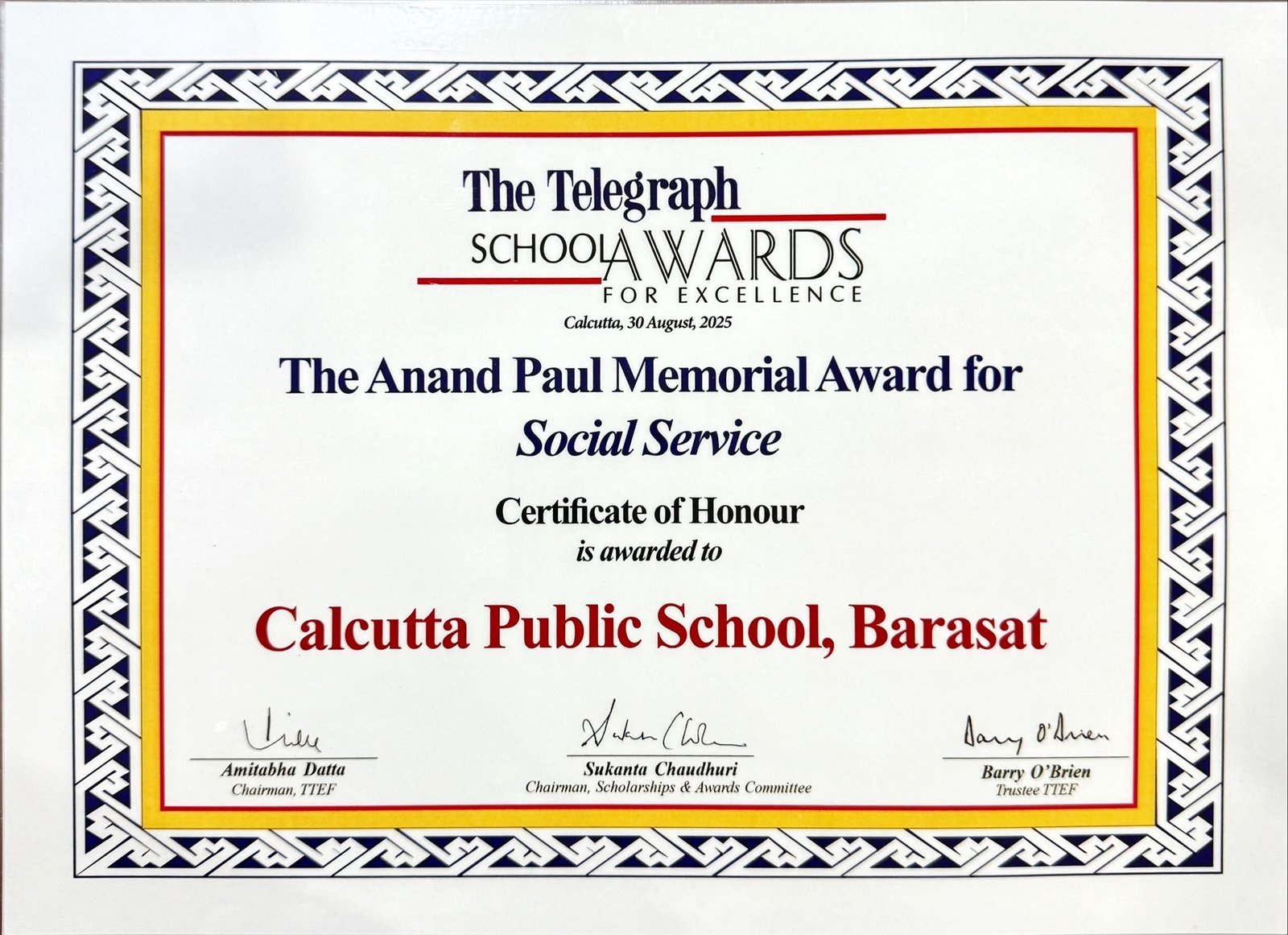 The Telegraph School Awards 2025 Certificate of Honour for Social Service