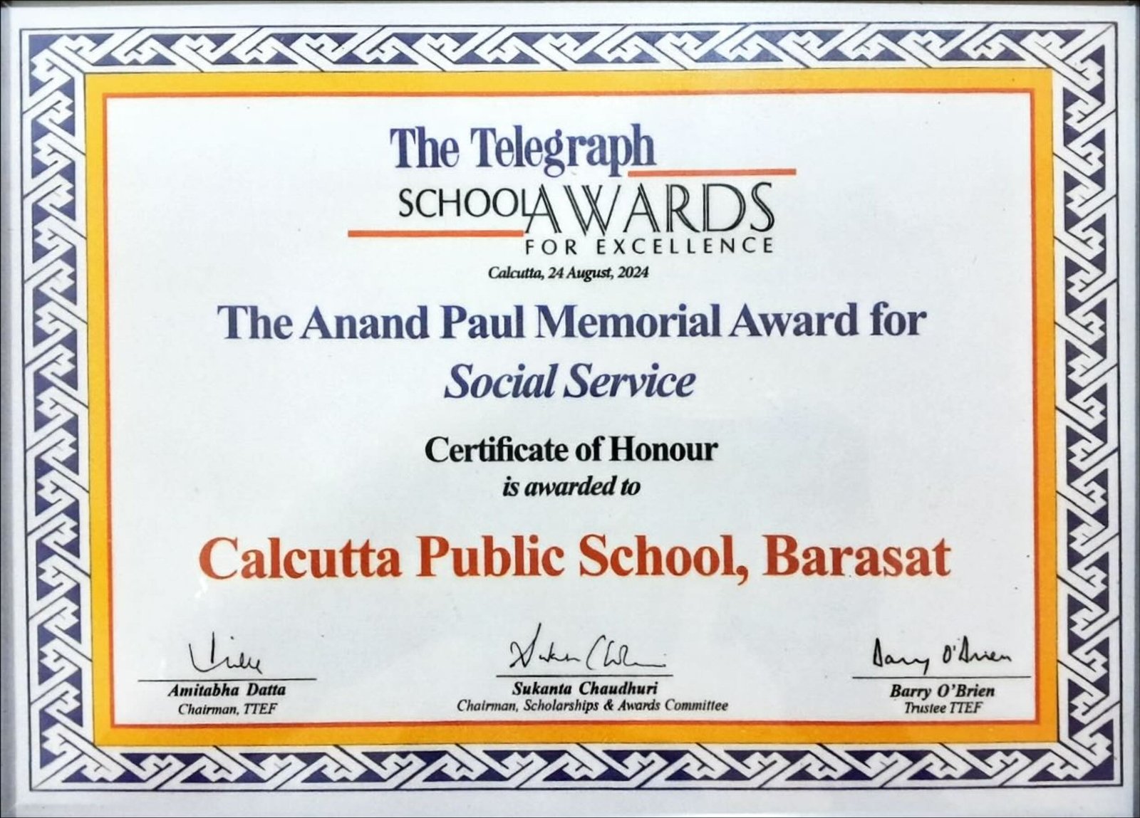 Telegraph School Awards 2024 Certificate of Honour for Social Service