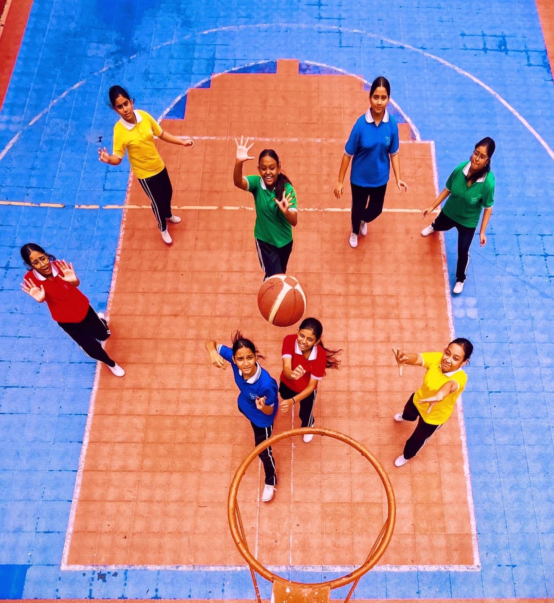 A dedicated sports area where students practice basketball and im ... Show more