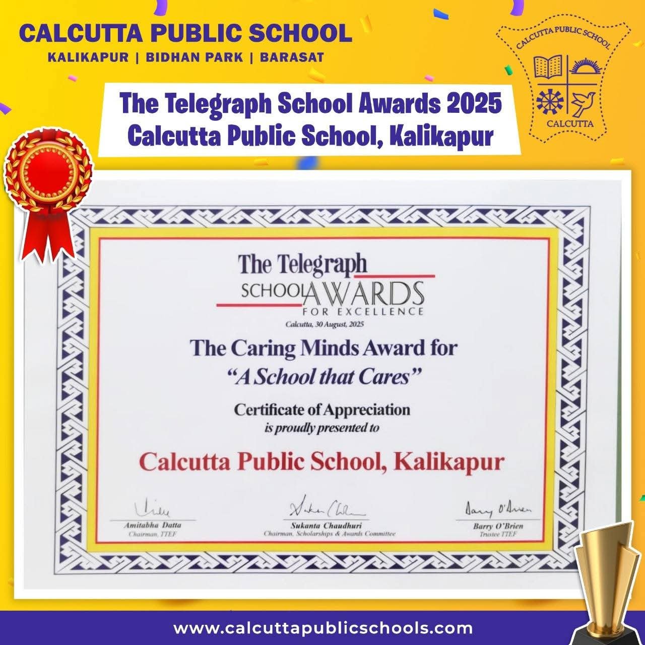 The Telegraph School Awards Certificate of Appreciation for A School That Cares