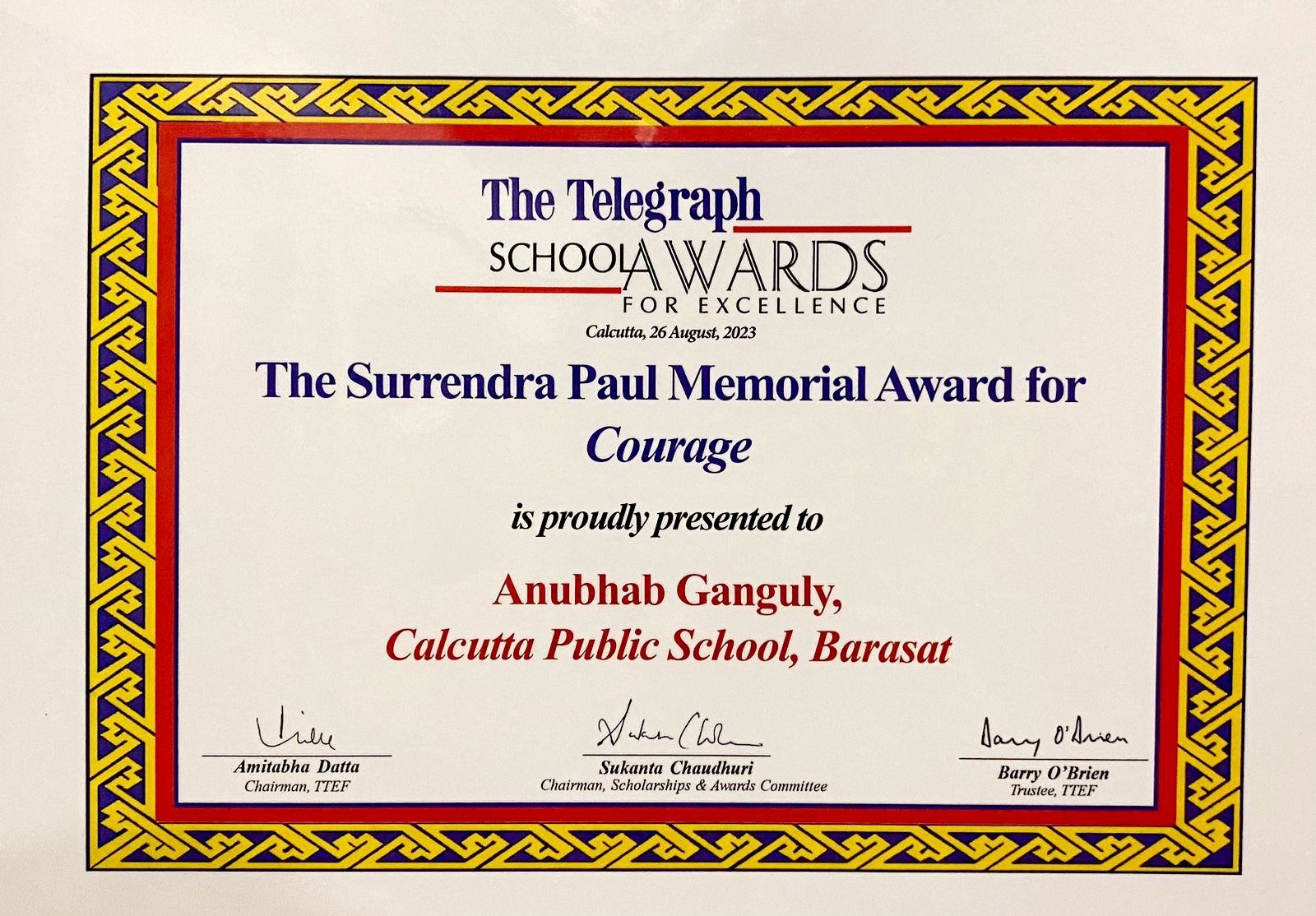 The Telegraph School Awards 2023 Surendra Paul Memorial Award for Courage