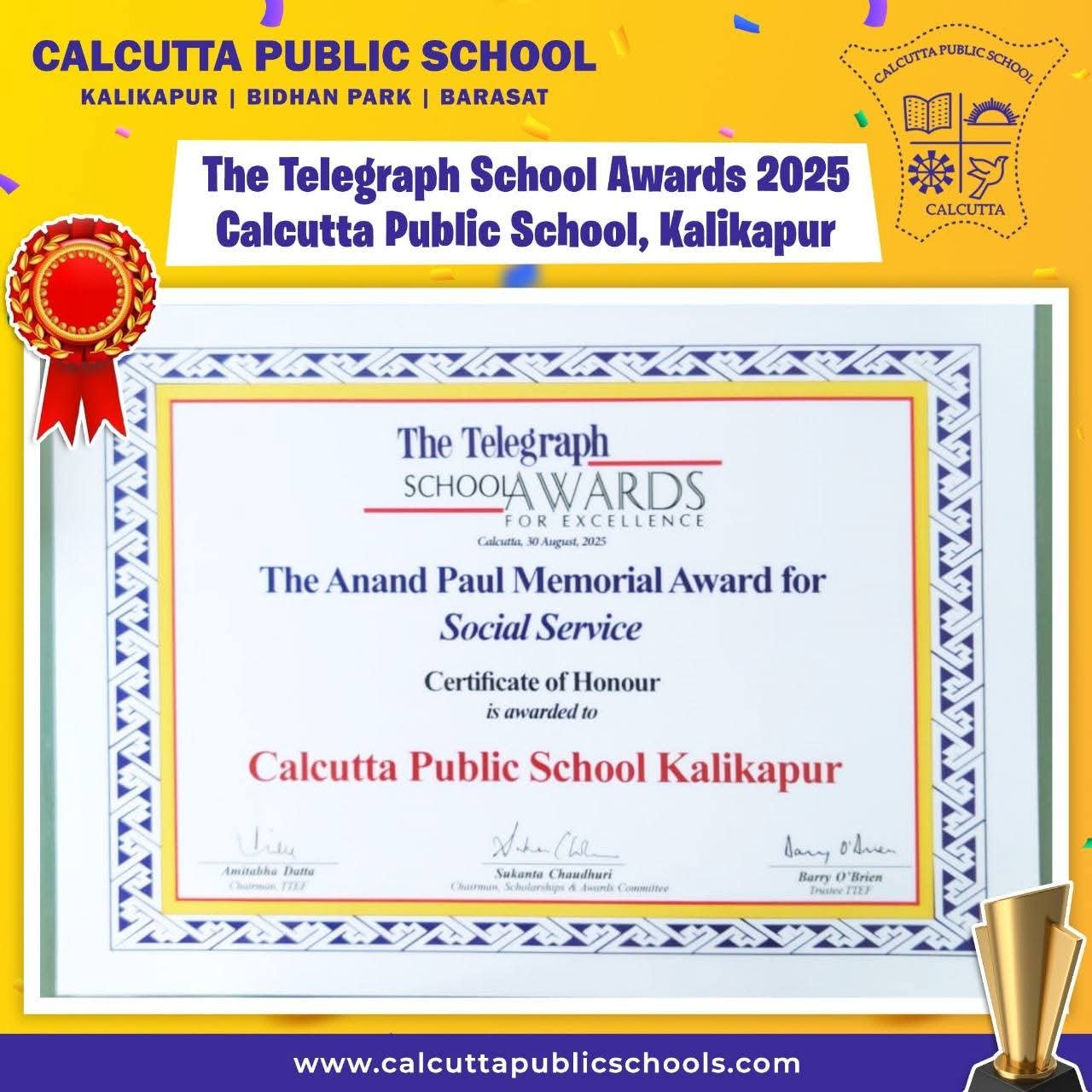 The Telegraph School Awards Certificate of Honour For Social Service